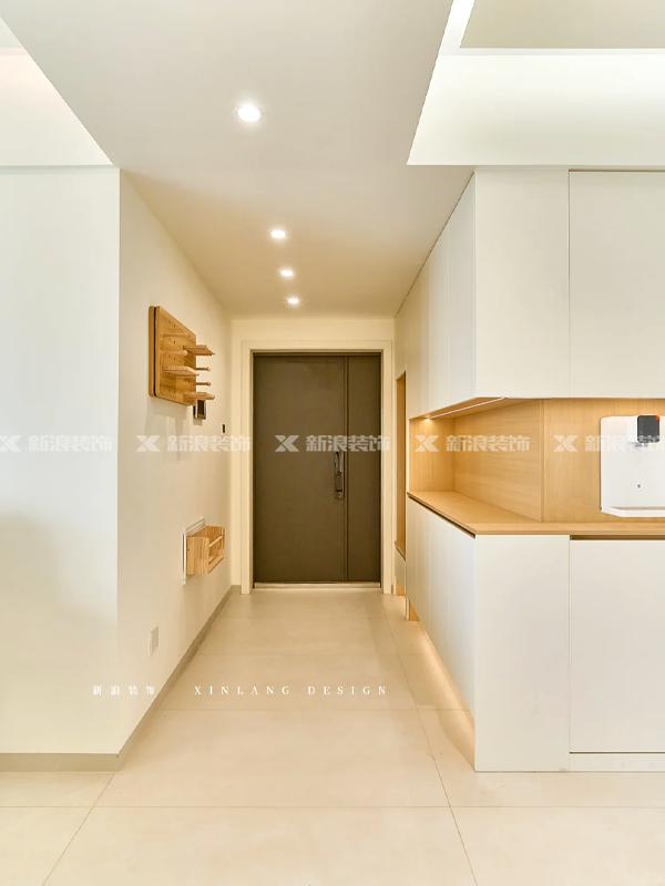 入戶鞋柜轉(zhuǎn)角直接連接餐邊柜,空間柔和通透,動(dòng)線流暢。