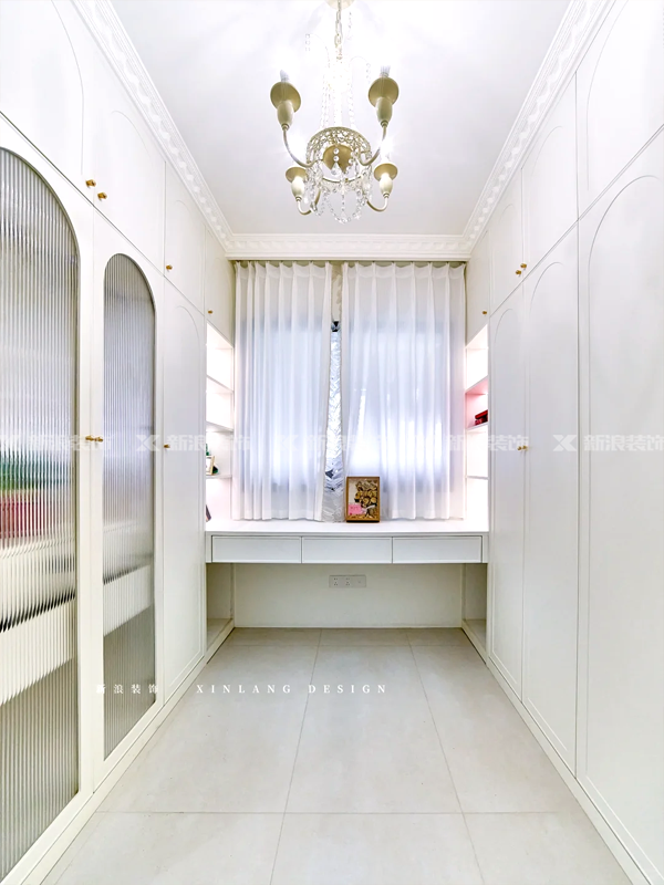 主臥做衣帽間設(shè)計(jì),法式造型柜門,超級(jí)浪漫。