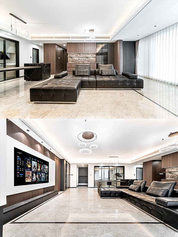 設(shè)計(jì)沿用了意式極簡(jiǎn)的設(shè)計(jì)理念,大面積使用煙熏尤加利木紋色,提升調(diào)性。
