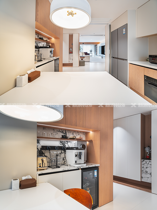 開放格+封閉柜結(jié)合,水吧臺、杯具、雜物各有專屬位置,收納強迫癥患者的福音!